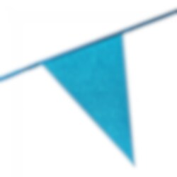 Pahvinen lippuviirinauha kimaltavassa sinisessä värissä, joka sopii loistavasti synttäreille tai muihin juhliin. Köynnös on noin 6 metriä pitkä.