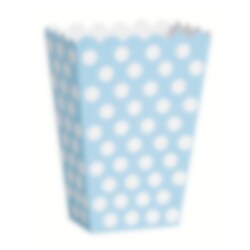 8 kpl hienoja, pilkullisia popcornrasioita. Tarjoile näistä rasioista babyshower- tai synttärivieraille herkkuja. Popcornrasian mitat ovat n. 11 x 14 cm.