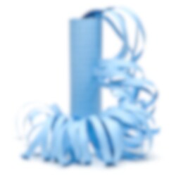 Vaaleansininen serpentiini. Yksi rulla serpentiinia koostuu 20 kpl ympyrästä jotka ovat noin 7 mm leveitä ja 4 m pitkiä. Hinta koskee 1 kpl serpentiinirullaa.