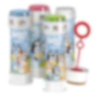 Saippuakuplat, joiden pullossa on värikkäitä kuvioita Blueysta. Saippuakuplat ovat suosittuja lahjoja lastenjuhlissa ja niitä on hauska puhaltaa yhdessä. Hinta on per kpl ja pullo sisältää 60 ml nestettä.
