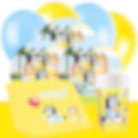 Tee syntymäpäivästä unohtumaton tällä täydellisellä Bluey-juhlasetillä. Täältä löydät kaiken tarvittavan hauskaan ja leikkisään syntymäpäiväjuhlaan Blueyn ja koko perheen seurassa. Paketti sisältää lautaset (23 cm), ekstra suuret pahvimukit (270 ml) ja servetit (33 x 33 cm) suloisilla Bluey-aiheilla. Valitse sopiva koko 8 tai 16 hengelle. Lisäksi settiin kuuluu 10 keltaista ja 10 vaaleansinistä ilmapalloa, jotka luovat oikean Bluey-tunnelman, sekä käytännöllinen keltainen muoviliina (137 x 274 cm). Viimeistele juhlat: Täydennä pakettia suosituilla juhlapusseillamme (karkkipussit), juhlarasioilla, pienillä leluilla ja muilla Bluey-koristeilla. Muista myös tutustua leivontatarvikkeisiimme, joilla loihdit upean Bluey-kakun!