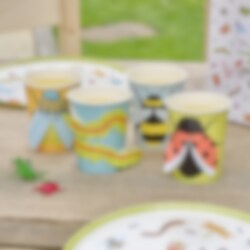 8 kpl. värikkäitä mukeja, jotka kohottavat Bug Party -juhlien tunnelmaa! Täydellinen pienille tutkimusmatkailijoille erilaisilla hyönteiskuvioilla. Nämä pahvimukit ovat täydellisiä hauskan ja leikkisän tunnelman luomiseen juhlissa. Ne ovat noin 11 cm korkeita ja 23 cm leveitä.