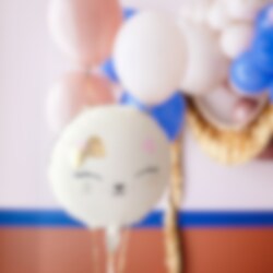 Folioilmapallo söpöllä kissakuvalla! Ilmapallo on täytettynä noin 45 cm ja se voidaan täyttää heliumilla tai ilmalla. Ilmapallossa on itsestään sulkeutuva venttiili. Jos haluat täyttää ilmapallon tavallisella ilmalla, tarvitset ilmapallopumpun tai pillin.