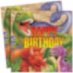 16 hienoa Dinosaurus-aiheista lautasliina. Kata nämä hauskat lautasliinat synttäripöytään kun on juhlien aika! Lautasliinat ovat aina tarpeen lastenjuhlissa, jonka lisäksi ne ovat hauskan näköisiä herkkujen ohella. 33x33 cm.