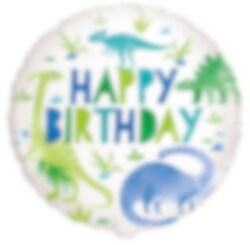 Hieno folioilmapallo, jossa on värikkäitä dinosauruksia valkoisella pohjalla. Hauska koriste dinosaurusaiheisiin juhliin. Ilmapallo on halkaisijaltaan noin 45 cm, ja se täytetään tavallisella ilmalla (ilmapallopumpun avulla) tai heliumilla.