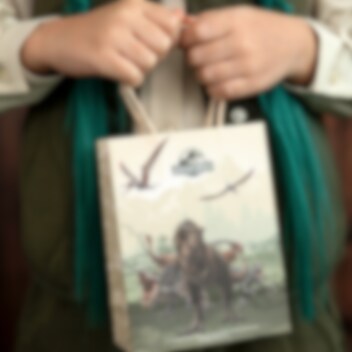 Jokainen pakkaus sisältää 6 kpl FSC-sertifioidusta paperista valmistettuja juhlapusseja. Pussit ovat kooltaan 12 x 15,5 x 6 cm ja ne on koristeltu mahtavilla dinosauruksilla, kuten T-Rexillä ja lentävillä pterosauruksilla villissä maisemassa.