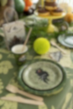Astu maailmaan, joka on täynnä jännittäviä dinosauruksia näillä Jurassic World -lautasilla! Mystinen olento, jolla on hehkuva oranssinpunainen silmä ja terävät kynnet, murtautuu lautasen läpi valmiina yllättämään juhlavieraat.