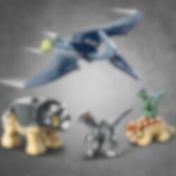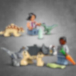 LEGO® Jurassic World Dinosauruspoikasten pelastuskeskus (76963) innostaa yli 4-vuotiaat hoivaamaan dinovauvoja. Leikkien lomassa opitaan myös paljon uutta. Setti sisältää maasturin ja tutkimusalueen luolaseinineen, jotka molemmat voi rakentaa näppärästi aloituspalikoista, sekä syöttöpaikan. Mukana 2 minihahmoa, Ankylosaurus-dinovauva, Triceratops‑ ja Velociraptor-hahmot, pieni Velociraptor sekä iso Pteranodon, joiden avulla lasten dinoleikit pääsevät alkuun tuota pikaa. LEGO dinosauruslelun mukana tulevat kuvitetut ohjeet ovat loistojuttu lapsille, jotka vasta opettelevat lukemaan. LEGO Builder sovelluksen intuitiivisilla zoomaus‑ ja kiertotyökaluilla lapset hahmottavat rakentamansa mallit, joten elämys saa hauskoja digitaalisia ulottuvuuksia. LEGO Jurassic World 4+ setit johdattavat lapset suosikkielokuvien ja TV-sarjoista tuttujen hahmojen maailmaan. Settien aloituspalikoiden avulla ensikertalaisetkin osaavat rakentaa ajoneuvoja, rakennuksia ja vaikka mitä muuta vanhemman sisaruksen tai aikuisen pienellä avustuksella. Nämä setit ovat hauskoja dinoaiheisia LEGO lahjoja.