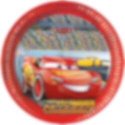 8 kpl lautasia siistillä kuvalla Pixar-elokuvasta Autot 3. Paperilautasten läpimitta on 23 cm.