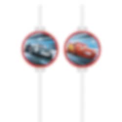 4 kpl paperipillejä hauskoilla Autot-kuvilla. Pillien pituus on noin 21 cm ja kuvioiden halkaisija on noin 6,5 cm.