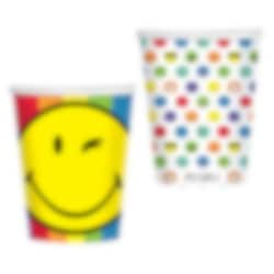 8 kpl pahvimukeja kahdella eri ulkoasulla ja erilaisilla smiley-teemoilla. Täydellinen pöytäkattaukseen synttäreille, joiden teemana ovat hymiöt. Mukien korkeus on noin 10 cm ja tilavuus n. 250 ml.