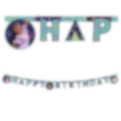 Kaunis viiri Encanto-elokuvan hahmojen kuvilla ja "Happy Birthday" -tekstillä. Viiri on 2 metriä pitkä.
