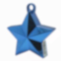 Tyylikäs tähden mallinen ilmapallon paino sinistä metalliväriä, pitää täytetyt heliumpallot paikallaan. Paino on n. 170 grammaa ja kapasiteetti noin 30 kpl lateksi-ilmapalloa tai 8-10 kpl numero- tai kirjainilmapalloa.