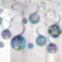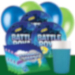 Valmis juhlasetti, joka sisältää lautaset (23 cm), turkoosit pahvimukit (250 ml) ja servetit (33 x 33 cm) 8:lle, 16:lle tai 24:lle henkilölle. Näiden lisäksi mukaan kuuluu 10 kpl tummansinisiä ja 10 kpl vihreää ilmapalloja sekä tummanvihreä muovinen pöytäliina ( 137 x 274 cm). 24 henkilön settiin kuuluu 2 pöytäliinaa.