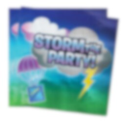 16 kpl värikkäitä servettejä, joiden yhdellä puolella on "Storm the Party!" teksti. Täydellinen lisä Battle Royal teemasynttäreiden kattaukseen. Servetit ovat 2-kerroksisia ja taittamattomana 22 x 22 cm kokoisia.