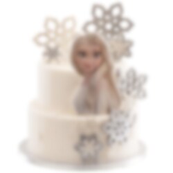 Kauniit vohveliset kakkukoristeet, joissa on prinsessa Elsa ja lumihiutaleet Disney-elokuvasarja Frozenista. Tee kakustasi erityinen näillä koristeilla. Pakkaus sisältää 7 erikokoista koristetta.