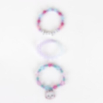 Tämä Gabby's Dollhouse rannekorusetti 3 kpl on hauska lisä jokaisen pienen muotifanin asustekokoelmaan. Jokainen pakkaus sisältää kolme eri väristä rannekorua, jotka on koristeltu suositun Gabby's Dollhouse -sarjan teeman mukaan.