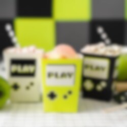 Tee juhlista entisistä jännittävämmät näiden upeiden peliteemaisten herkkulaatikoiden avulla. Pakkaus sisältää kuusi laatikkoa kolmessa eri mallissa. Täydellisiä naposteltavien, makeisten tai pienien yllätysten tarjoiluun. Laatikoiden koko on 7 x 7 x 12 cm. Valmistettu pahvista.
