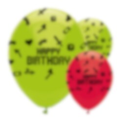 6 kpl vihreitä ja punaisia ilmapalloja kivalla tietokonepeli kuva-aiheella. Hieno koriste juhlakattaukseen. Täytettyjen ilmapallojen halkaisija on noin 30 cm.
