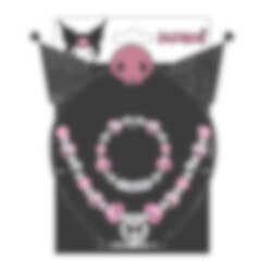 Tuo asuun asennetta tällä tyylikkäällä Kuromi-korusetillä! Setti sisältää kimaltelevan diadeemin kissankorvilla, vaaleanpunavalkoisen helmikorun, jossa on teksti "LOVE", sekä yhteensopivan kaulakorun, jossa on söpö Kuromi-riipus. Täydellinen asuste pienille Hello Kitty -universumin faneille, jotka haluavat erottua joukosta!