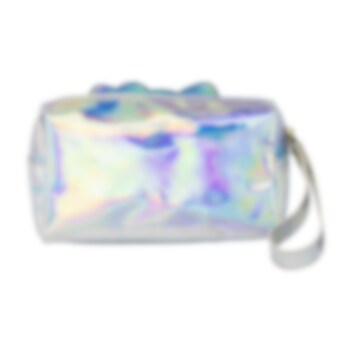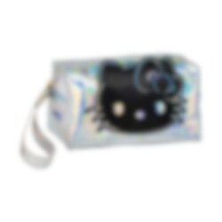 Tämä kiiltävä Hello Kitty -toilettilaukku on tyylikäs lisä jokaiseen matkalaukkuun! Hopeanhohtoinen pinta Hello Kittyn mustien kasvojen ja kimaltelevan rusetin kanssa luo modernin ja leikkisän ilmeen. Täydellinen meikille, hiuslenkeille tai muille pikkutavaroille.