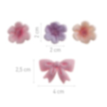 Tämä setti sisältää 10 yksityiskohtaista koristetta kukkien ja ruusettien muodossa. Vaaleanpunaisia, violetin ja persikan sävyjä – täydellisiä kuppikakkujen, kakkujen ja muiden juhlaleivonnaisten koristeluun.