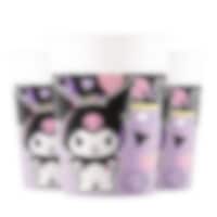 Setti sisältää lautaset (23 cm), pahvimukit (200 ml) ja servetit (33 x 33 cm) näyttävillä Kuromi-aiheilla. Valitse sopiva koko 8 tai 16 hengelle.
