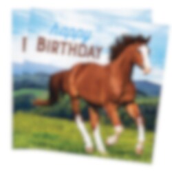 16 kpl servettejä ihanalla hevosaiheella ja tekstillä "Happy Birthday" sinisellä ja ruskealla värillä. Servetit ovat 2-kerroksisia ja n. 33 x 33 cm avattuina.