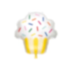 Hieno värikästä kuppikakkua kuvaava ilmapallo. Hauska koriste juhliin. Ilmapallo on täytettynä noin 74 cm, ja se voidaan täyttää ilmalla tai heliumilla.
