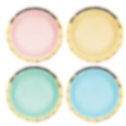 8 kpl pikkulautasia 4kpl eri väreissä: pastellinvihreä, pastelliroosa, pastellikeltainen, pastellinsininen, kultafolioiduilla reunoilla ja kauniilla Ice Cream Party-teemalla. Hienot pöytäkattaukseen synttäreille tai juhliin. Pienten lautasten halkaisija on noin 18 cm.