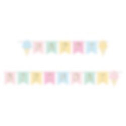Pahviköynnös kauniissa pastelliväreissä jäätelön kuvilla ja kultafolioidulla "Happy Birthday"-tekstillä. Ripusta köynnös seinälle tai pöydän yläpuolelle ennen Ice Cream Party-teemasynttäreitä. Köynnöksen pituus on noin 2,52 metriä ja kuvien koko noin 16,5 cm.