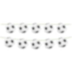 Paperinen viiri jalkapallojen kuvilla. Upea koriste ripustaa seinälle tai pöydän ylle jalkapallojuhlien alkaessa. Viiri on n. 10 metriä pitkä ja jalkapallot n. 22 cm halkaisijaltaan.