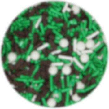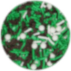 Värikäs strösselisekoitus jalkapalloteemalla. Täydellinen koriste jalkapallojuhlien kakkuun tai leivonnaisiin. Pakkaus sisältää 65 grammaa.