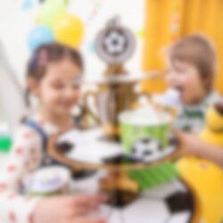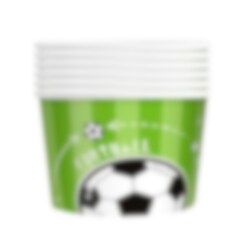 6 kpl pieniä jäätelökuppeja kauniissa väreissä jalkapalloteemalla. Kupit ovat täydellisiä jäätelön, karkin, naposteltavien tai muiden herkkujen tarjoiluun. Tilavuus 150 ml, koko 6 x 7 cm. Valmistettu pahvista.