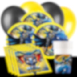 Valmis juhlasetti, joka sisältää lautaset (23 cm), pahvimukeja (200 ml) ja servetit (33 x 33 cm) 8:lle, 16:lle tai 24:lle henkilölle. Näiden lisäksi mukaan kuuluu 10 kpl mustia ja 10 kpl keltaisia ilmapalloja sekä mustat muovinen pöytäliina ( 137 x 274 cm). 24 henkilön settiin kuuluu 2 pöytäliinaa.