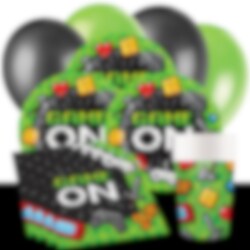 Tämä valmis juhlasetti josta löydät alkuperäiset tarvikkeet, sisältää lautaset (23 cm), pahvimukeja (266 ml) ja servetit (33 x 33 cm) 8 tai 16 hengelle sekä 10 vihreää ja 10 mustaa ilmapalloa ja musta muovisen pöytäliinan (137 x 274 cm).