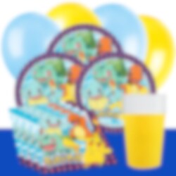 Valmis juhlasetti, joka sisältää Pokémon lautaset (23 cm), pahvimukit (270 ml) ja Pokémon servetit (33 x 33 cm) 8:lle, 16:lle tai 24:lle henkilölle. Näiden lisäksi mukaan kuuluu 10 kpl vaaleansinisiä ja 10 kpl keltaisia ilmapalloja sekä tummansininen muovinen pöytäliina ( 137 x 274 cm). 24 henkilön settiin kuuluu 2 pöytäliinaa.