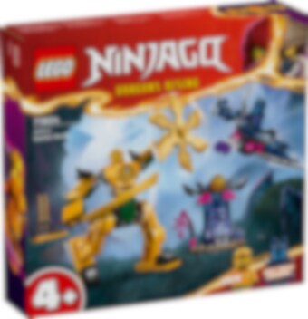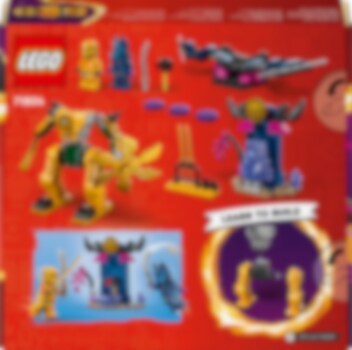 Arinin taistelurobotti (71804) ninjalelusetin parissa yli 4-vuotiaiden rakennustaidot karttuvat lasten auttaessa ninjasankareita pelastamaan lohikäärmeystävänsä. Roolileikkeihin sopiva toimintalelu sisältää näyttävän robottihahmon, joka innostaa leikkimään NINJAGO® Lohikäärmeiden nousu ‑TV-sarjan 2. kaudelta tuttuja jännittäviä seikkailuja. LEGO® setti sisältää 2 minihahmoa: Arinin katana-miekkoineen ja susinaamioon sonnustautuneen soturin miekkoineen. Arinin voi laittaa taivuteltavaan robottiin, jolla on varusteena iso miekka ja pyörivä terä. Soturi susinaamiossa kiitää taisteluun liitimellään, jossa on taivuteltavat siivet, kiekonheitin ja 2 keihästä. Mukana on myös palikoista rakennettava kristalliluola, jonka sisällä on murskausnuijaja aseteline 2 kultaiselle katana-miekalle. Yli 4-vuotiaille suunniteltu ninjalelusetti avaa lapsille oven LEGO palikoilla rakentelun maailmaan. Setti sisältää osittain valmiiksi rakennetun aloituspalikan, jonka avulla itseluottamus vahvistuu ja rakent elun alkuun pääsee nopeasti.