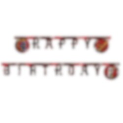Punainen köynnös, jossa on teksti "Happy Birthday " ja kuvitukset suositusta LEGO Ninjagosta. Todella hieno lisätarvike, joka voidaan ripustaa seinälle LEGO Ninjago -teemaisiin juhliin. Köynnös on noin 2 metriä pitkä ja valmistettu FSC-sertifioidusta paperista.