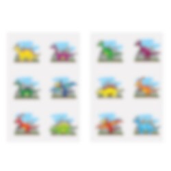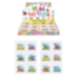 6 kpl tatuointia joissa hienoja piirrettyjä motiiveja dinosauruksista. Yksi arkki sisältää 6 kpl tatuointia, jotka helposti voi irrottaa toisistaan rei'itettyjen rivien avulla. Jokainen tatuointi on noin 3,5 cm kokoinen.