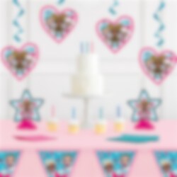 Koristelukitti hauskalla LOL Surprise kuviolla. Koristele juhlahuone hienoksi pakkauksen kaikilla erilaisilla koristeilla. Pakkaus sisältää 2 kpl honeycomb-pöytäkoristeita (n. 15 cm korkeita), 4 kpl ripustettavia koristeita (n. 14 cm halkaisijaltaan) ja kaunis lippuköynnös (n 243 cm pitkä).