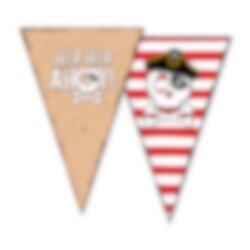 Luo aitoa merirosvotunnelmaa synttärijuhliin tällä ihastuttavalla merirosvoteemaisella lippuviirinauhalla. Kolmiomaisissa lipuissa on leikkisiä pääkallo-, merirosvohattu- ja raitakuvia sekä teksti "Hip Hip Ahoy!", mikä tekee siitä sopivan koristeen sekä lasten synttärijuhliin että merirosvojuhliin.