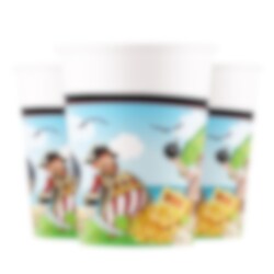 8 pahvimukia hienolla merirosvokuvalla. Sopivat hienosti kattaukseen hauskoihin merirosvoteeman juhliin. Mukit ovat noin 10 cm korkeita ja niihin mahtuu noin 200 ml. Mukit on valmistettu FSC-sertifioidusta pahvista.