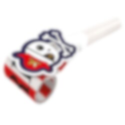8 kpl punavalkoraidallisia juhlapillejä hienolla Jolly Roger -kuvalla. Täydellinen merirosvojuhlien kattaukseen.