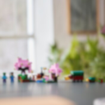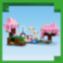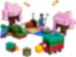 Kukkiva kirsikkapuutarha (21260) on videopeliaiheinen lelusetti leikkeihin ja ensimmäinen LEGO® setti, joka sisältää Minecraft® pelin kirsikkapuubiomista tuttuja hahmoja ja yksityiskohtia. Se on mahtava lahja kaikille 8 vuotta täyttäneille Minecraft-videopelin pelaajille sekä luonto‑ ja eläinaiheisista leluseteistä – sekä zombitaisteluista – pitäville lapsille! Tämä on ensimmäinen LEGO Minecraft lelusetti, jossa on mukana Sunnyn sankarihahmo. Lapset voivat laittaa Sunnyn hahmon hoitamaan kirsikkapuutarhaa, jossa on 2 värikästä puuta, puron yli kaartuva pikkusilta ja hiekkapuutarha, jossa on koristeruukku ja hiililiuskelohkare. Setissä on 2 mehiläistä, täysikasvuinen nuuskija – pelistä tuttu ystävällinen mobi – sekä nuuskijan poikanen ja muna. Aikuisella nuuskijalla on haistelutoiminto, jota lapset voivat käyttää sormillaan niin, että nuuskija kaivaa maasta esiin harvinaisen siemenen. Toimintaleikkejä on luvassa, kun ilkeä zombi on häädettävä puutarhasta. LEGO Builder sovellus avaa rakentelijoille hauskan digitaalisen maailman.