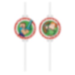 4 kpl paperipillejä Minecraft-kuvioilla. Pillien pituus on noin 21 cm ja kuvioiden halkaisija on noin 6,5 cm.