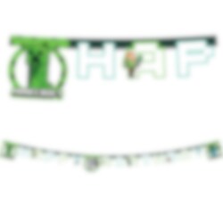 Kaunis pahvinen viirinauha, jossa on teksti "Happy Birthday" sekä hienoja Minecraftist-kuvioita. Viirinauhan pituus on 2 metriä.