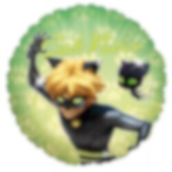Foliopallo, jossa on hieno Cat Noir -kuva Miraculous Ladybugista. Ilmapallo on täytettynä halkaisijaltaan 45 cm ja se voidaan täyttää ilmalla tai heliumilla. Ilmapallossa on itsestään sulkeutuva venttiili ja sen täyttämiseen tavallisella ilmalla tarvitaan ilmapallopumppu tai pilli.