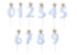 Hienot kakkukynttilät kakun tai muiden leivonnaisten koristeluun. Kakkukynttilät ovat vaaleansinisiä, ja niiden päällä on kultainen,kimaltava kruunu. Voit yhdistellä numerot haluamallasi tavalla, sillä kynttilöitä on saatavana numeroissa 0-9.