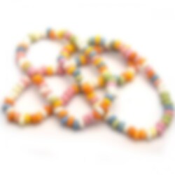 Ikisuosikki klassikko. Karkkikaulakoru on aina ollut lasten suosikki. Myydään 5 kpl pakkauksissa ja sisältää eri värisiä rypälesokerimakeisia resorinauhaan pujotettuna.